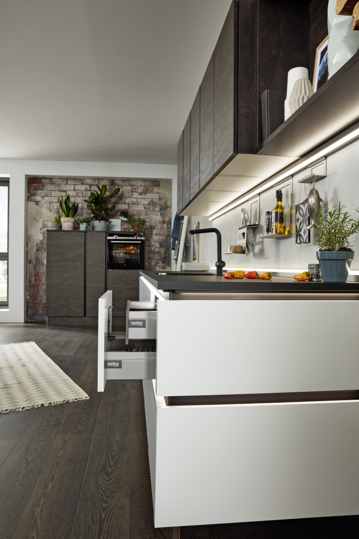 Nova Lack Quarzgrau / Legno Eiche Trüffel