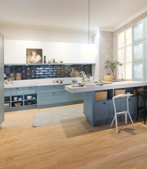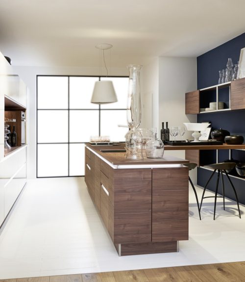 Nova Lack 73T - Tiefblau Hochglanz / Legno 59T - Eiche Trüffel